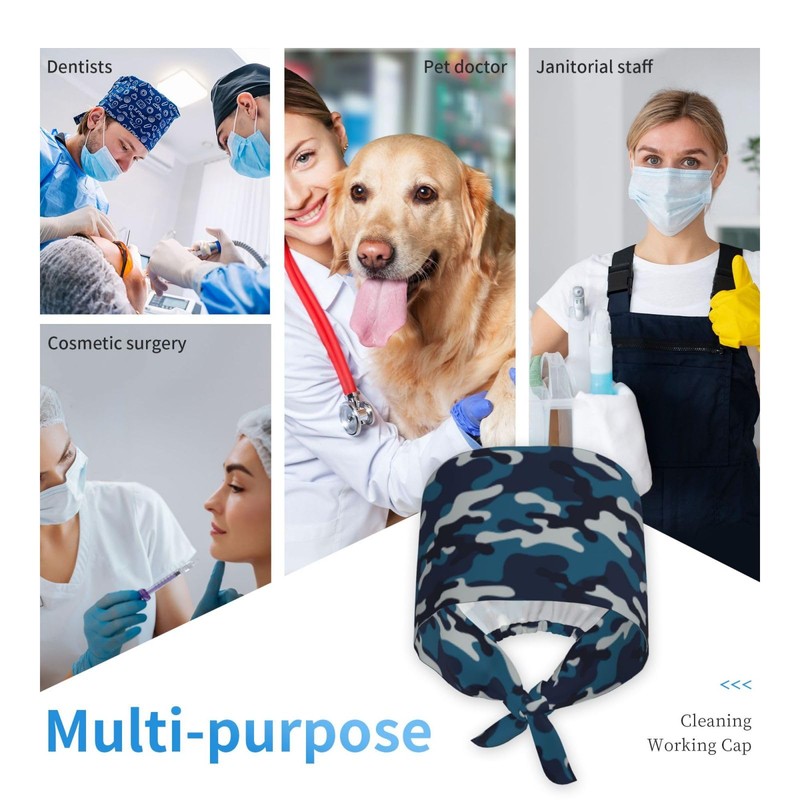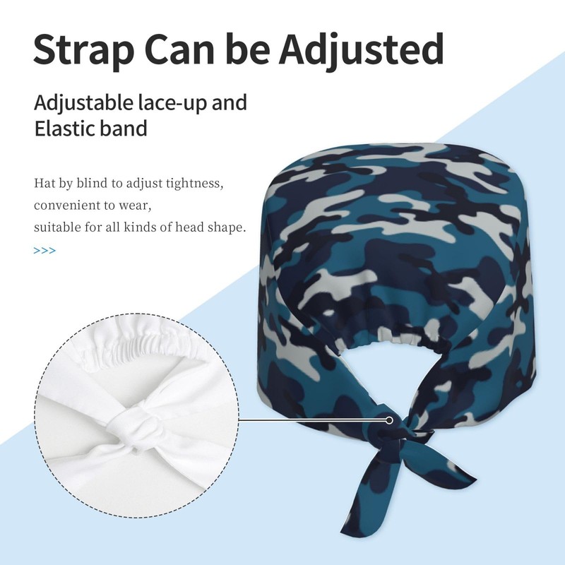 Navy Blue Camo Camouflage Cool Unisex Adjustable Surgical Sweatband - Elastic Bandage Cap - Scrub Caps for Nurse Working Cap
