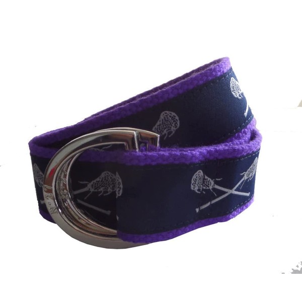 This signature lacrosse belt was designed by us and made for you! This print features our White lacrosse sticks on Nav y Ribbon...you can pair it with any webbing color to suit your needs and match your favorite team. Please let us know if you need help placing your order.