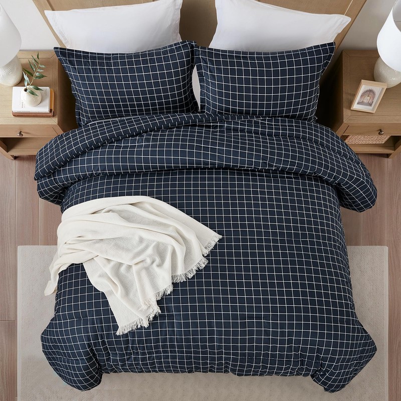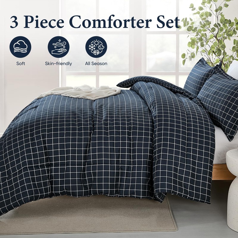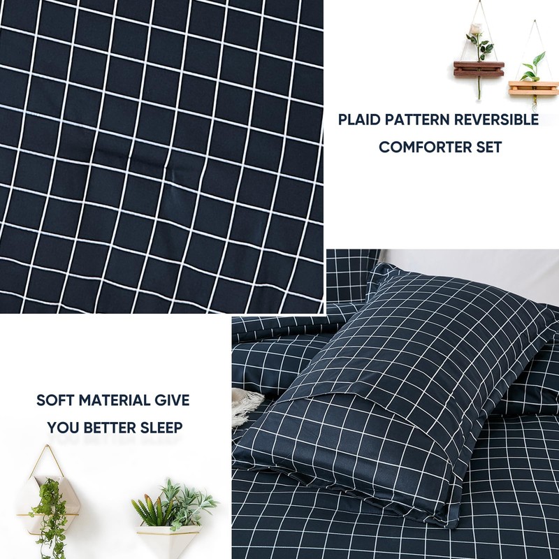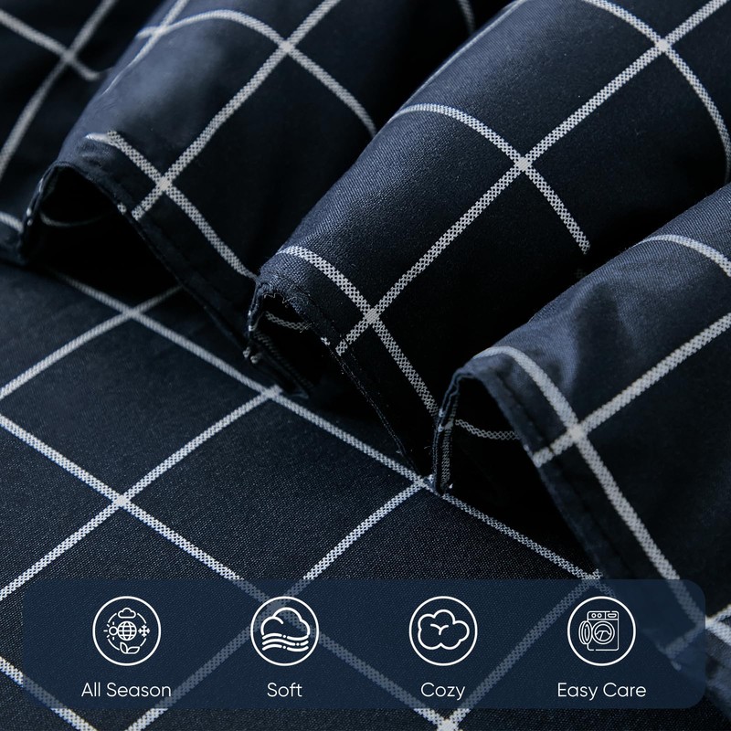 - 【PLAID PATTERN]】Concise plaid pattern is designed with navy blue and white gingham to add a modern and elegant look to your room. Simple color match makes this grid comforter become a focal point. Vivid visual effect will make the comforter the most appealing place in your room