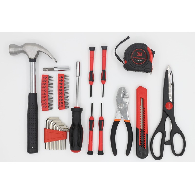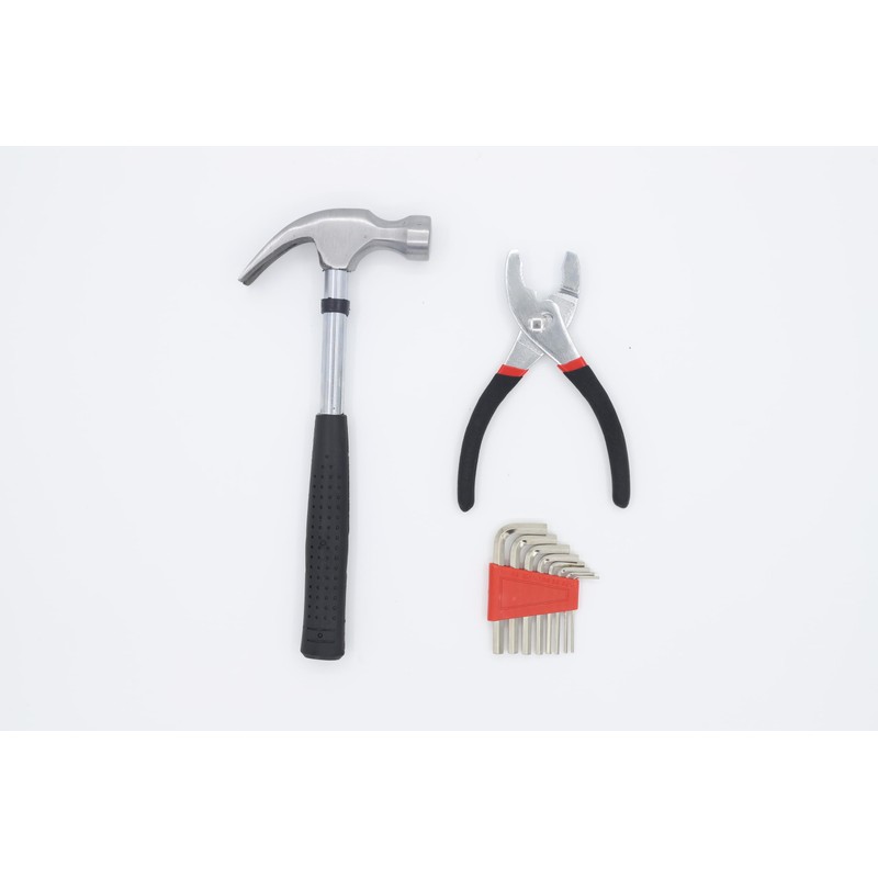 - Comprehensive Tool Selection: This home tool kit includes: Claw Hammer x 1, Screwdriver Bits x 20, Bit Driver x 1, Bit Holder/extension x 1, Hex Keys x 8, Precision Screwdrivers x 4, Slip Joint Plier x 1, Tape Measure x 1, Utility Knife x 1, Scissor x 1