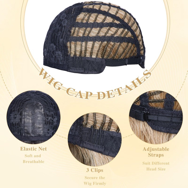 - Premium Wig Cap: 100% breathable rose mesh cap makes you feel comfortable when wearing it. There are 2 adjustment straps on both sides of the blonde bob wig, which can be wrapped in a fixed position to adapt to different head shapes. Easy to install and remove in 30 seconds.
