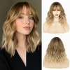 NAYOO Ombre Blonde Wig with Bangs, 14 Inch Bob Wig with Bangs for Women, Shoulder Length Short Wig, Glueless Short Wig