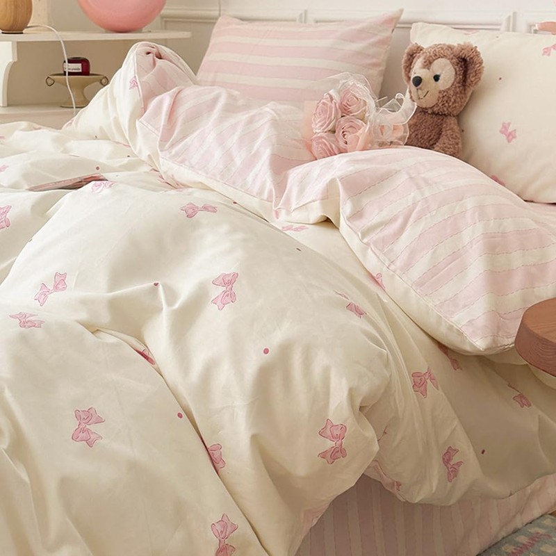 - Easy to Maintain: The pink bow duvet cover set is easy to maintain. Simply machine wash in cold water on a gentle cycle for a like-new restoration.