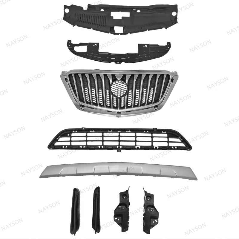 - Component 2: Front Bumper Fascia Skid Plate Upper Lower Chrome Grille Mesh