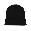Nayt Long Solid Plain Cuffed Beanie Knit Hat (Black)