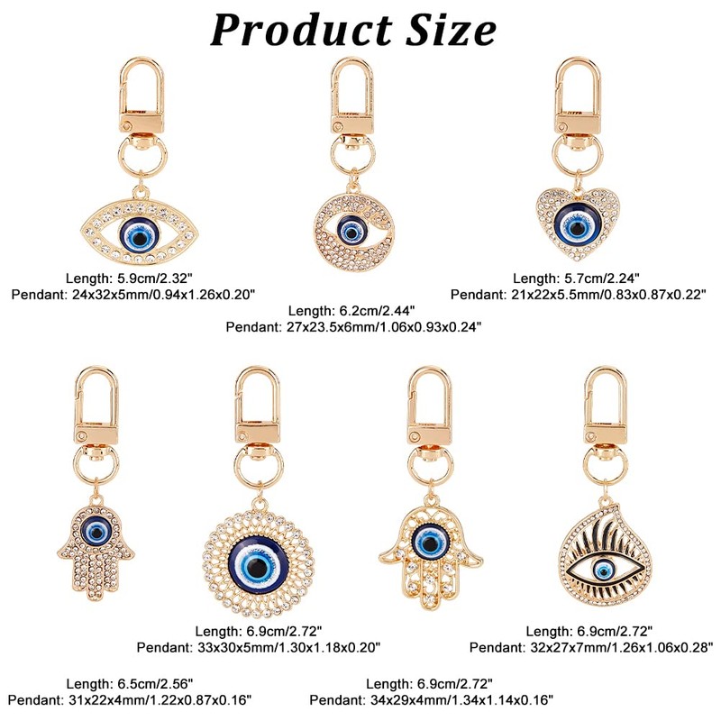 - 7 Styles Evil Eye Keychains - You will receive 7 pieces keychains, including Evil Eye, Hamsa Hand, Heart and Horse Eye Pattern. It is believed that the one who has it in his possession will receive protection from the evil eye and create it positive, happiness and prosperity.