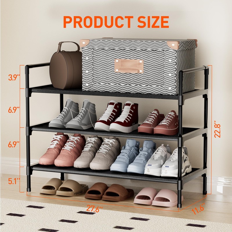 - Large Capacity:Our 3 tier shoe rack is spacious and has a tiered design, which makes the shoe stand easy to store your daily shoes such as sports shoes, high heels and slippers in an orderly manner.