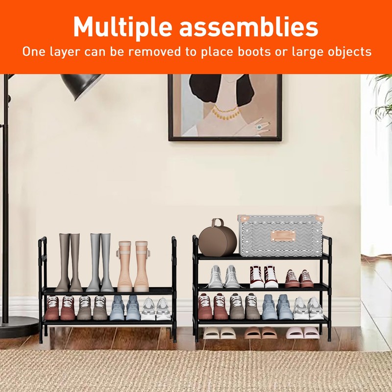 - Adjustable Shoe Rack: Our shoe rack can be removed one layer to fit high heels, boots, etc., or change it into low-level shoe rack for closet. Easy to install and disassemble, no tools are needed, just assemble the parts together by hand.