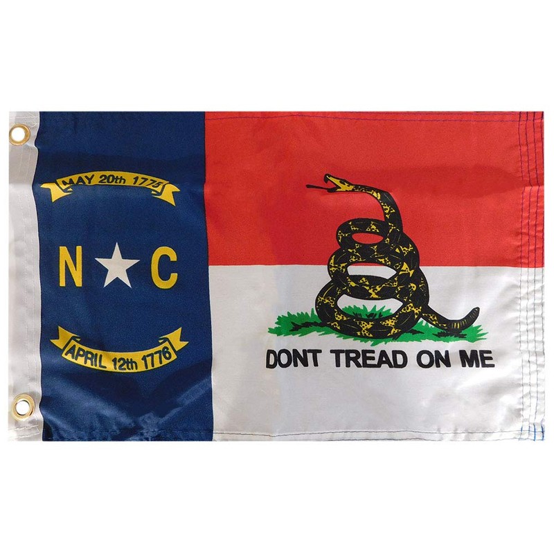 NC North Carolina Gadsden Don't Tread On Me 100D Woven Poly Knit Nylon 12x18 12"x18" Premium Quality Heavy Duty Fade Resistant Flag Grommets