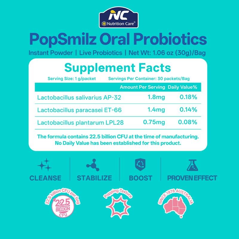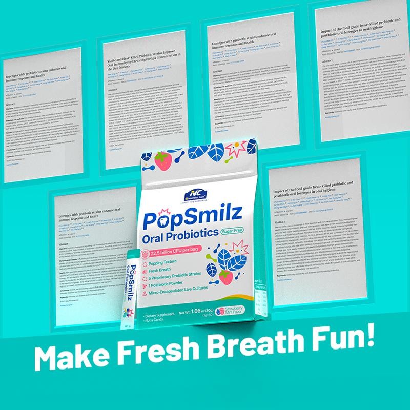 NC PopSmilz Oral Probiotics | Lactobacillus salivarius AP-32 | Sugar-Free Popping Candies | Supports Fresh Breath & Gut Health | 30 Count