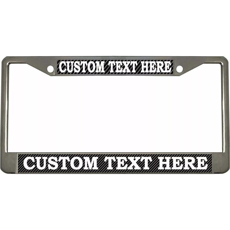 Get everyone's attention with this cool chrome plated license plate frame made of sturdy heavy metal and personalized with weather/car wash resistant vinyl that is waterproof/UV protected. It won't fade and will last for many many years. It is also a great gift item. It weighs about 9oz and measures 12" x 6" the frame is brand new and it's well packaged. The distance between two holes is about 7 inches. The frame fits all standard USA and Canada 12x6 license plates and can be used for the front or the back of a car.