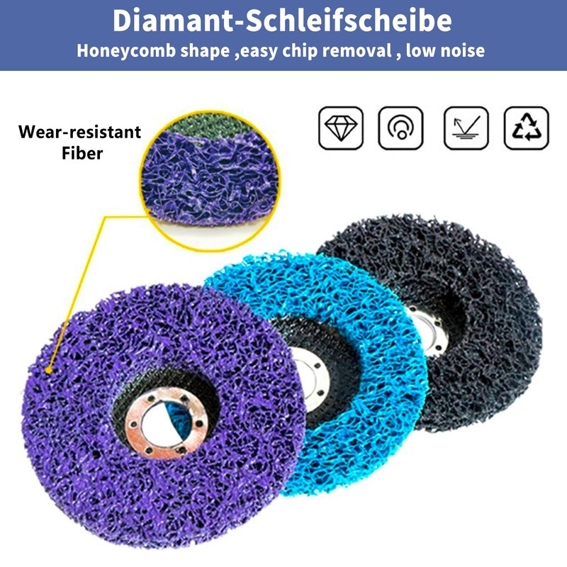- High-quality material: this cleaning disc set uses a fiber mesh as the base, with sharp abrasives with a resin elastomer firmly connected to the net. This creates a high-strength, very wear-resistant, honeycomb-shaped, soft grinding wheel. Compared to conventional sanding products, it is sharper, more durable and has a long service life