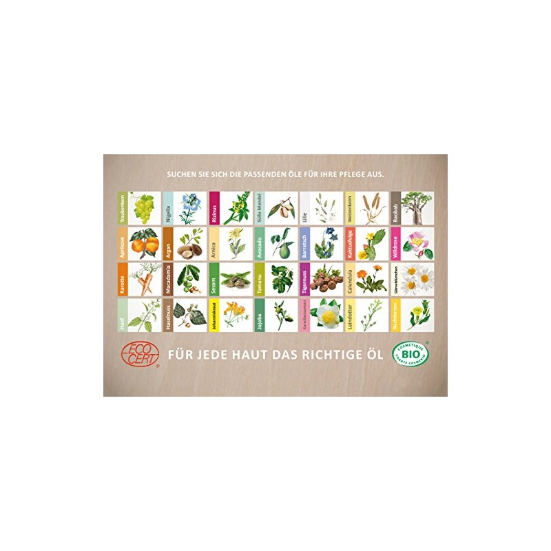 In addition to the oils are now eight different pure flower Wässer (hydrolat) New to the range. With the nourishing oil or floral water that you always know just with something with which ingredients your skin care for.
