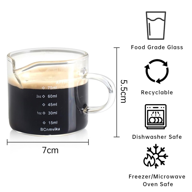 NCnnwovf Milk Frothing Pitcher Espresso Glass Measuring Cup, 75ML Espresso Cu...