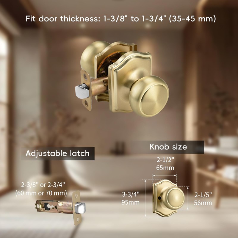 - DOOR THICKNESS: Fits most of size doors 1-3/8" to 1-3/4" thick, latch backset adjusts to either 2-3/8" or 2-3/4",you can remove the middle black part to adjust,with black part means 2-3/8"only.