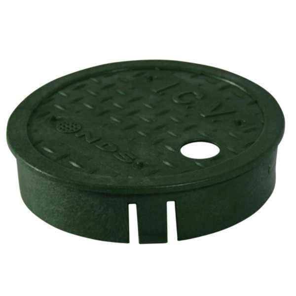 NDS 7 inch green round economy valve box overlapping ICV cover is designed to help prevent dirt and grass from settling between the cover and valve box. This cover is made from foam polyolefin. NDS valve, meter and access boxes are offered in a wide range of sizes from the 6-inch round valve box to the 17 inch x 30 inch rectangular box. They are available with black, green, purple, gray and sand covers with designations including irrigation control valve, water, sewer, electric, reclaimed water, cable TV, telephone and others.; ; Brand Name: NDS Sub Brand: ICV Width: 7 in. Height: 1.6 in. Shape: Round Product Type: Valve Box Cover Color: Green Material: Plastic Number in Package: 1