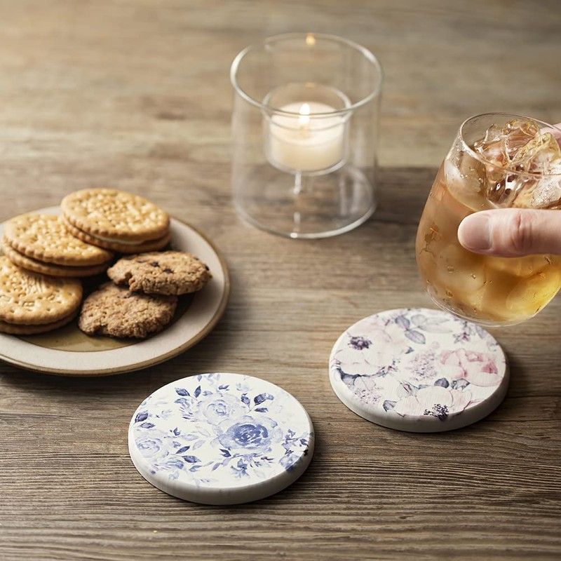 &NE Diatomaceous Earth Print Coaster Pink Flower NEO-179-PF 9 x 0.9 cm