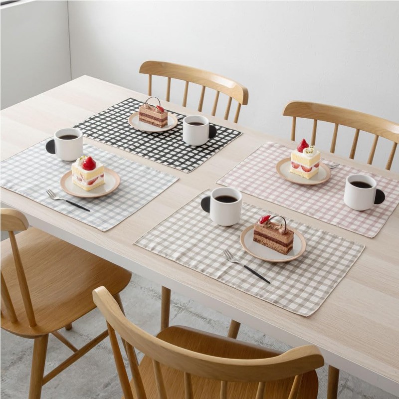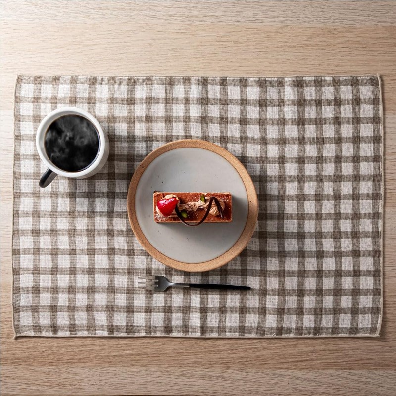 &NE NHK-073-LCBE Placemat, Linen-like Checkered Beige, Width 17.7 x Height 12.6 inches (45 x 32 cm), Lunch Mat, Made in Japan, Fabric, 100% Cotton, Simple, Cute, Washable, Check, Natural