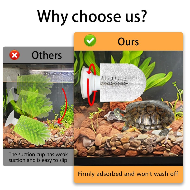 Neacus Turtle Brush with Suction Cup, Screw The Upgraded Turtle Scrub Brush Tightly on The Glass, It is Not Easy to Fall Off and Slide, Helping The Turtle Remove Dirt on The Back and Abdomen.