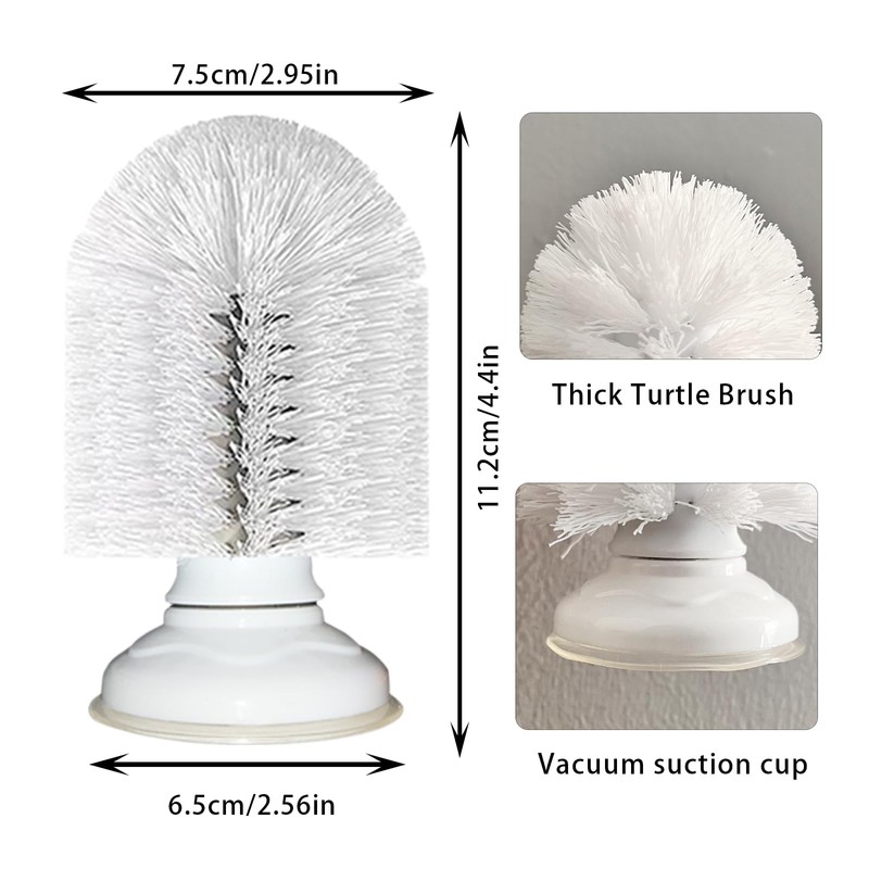 - Turtle brush usage steps:1When using the brush, first clean the bottom of the suction cup and the surface you want to place it on. 2Completely relax the bottom suction cup. 3Press the brush against the surface and slowly rotate it until it stops sliding.(Note!!! Do not rotate the suction cup to the bottom, as this may cause the brush to fall off after excessive squeezing)