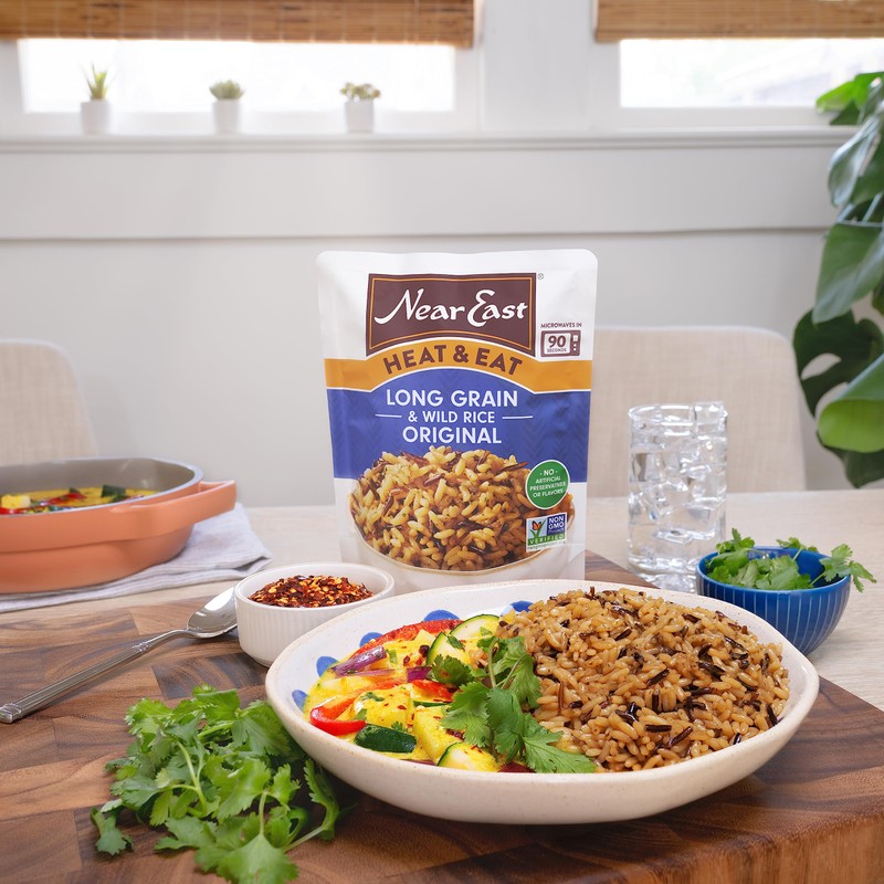 - Includes 8 microwaveable pouches of Near East Heat & Eat Rice, Long Grain & Wild Rice Original