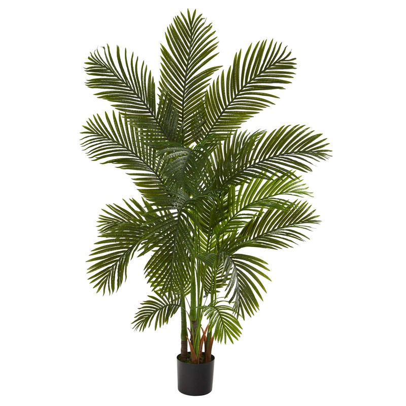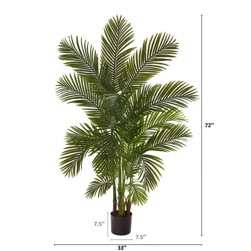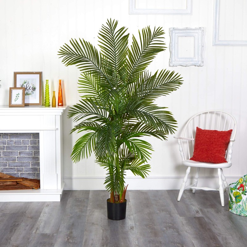 - Create a relaxing atmosphere with this artificial areca palm tree boasting tiers of realistic foliage that naturally fans upwards. Stands 6’ high from an accompanying nursery planter.