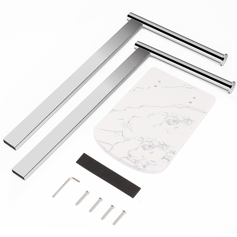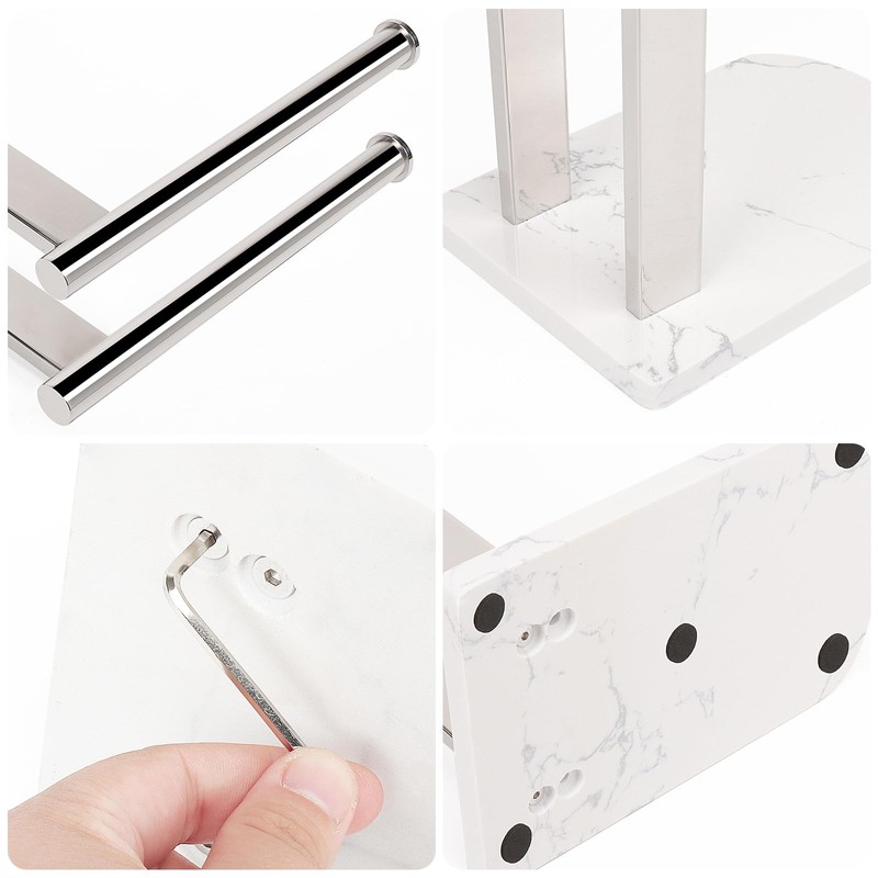 - EASY INSTALLATION: Step1: Insert the first screw from the holes of marble base into the holes of towel bars and tighten it half. Step2: Use the same method to insert the rest of the screws in turn and tighten them half. Step3: Tighten all the screws with hexagon wrench.