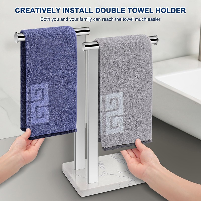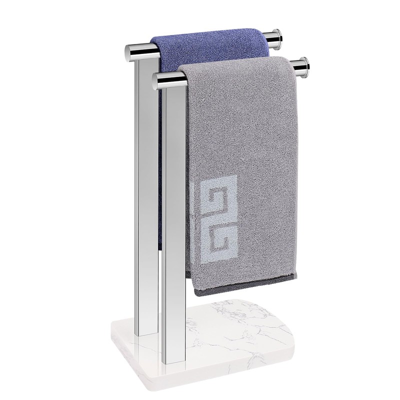 - RUSTPROOF: NearMoon standing double hand towel bar is constructed by superior 304 stainless steel with marble base, solid and never rust. Suitable for humid environments.