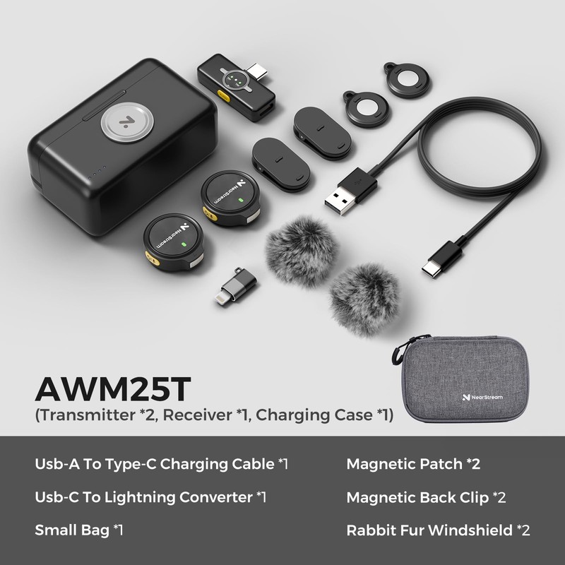 NearStream NearStream Wireless Lavalier Microphone for iPhone/Android, Lapel Microphone Wireless with Lightning/USB-C Plug-Play, Noise Cancellation, 24H Battery for Livestream, Vlog, Interview, Podcast (AWM25T)
