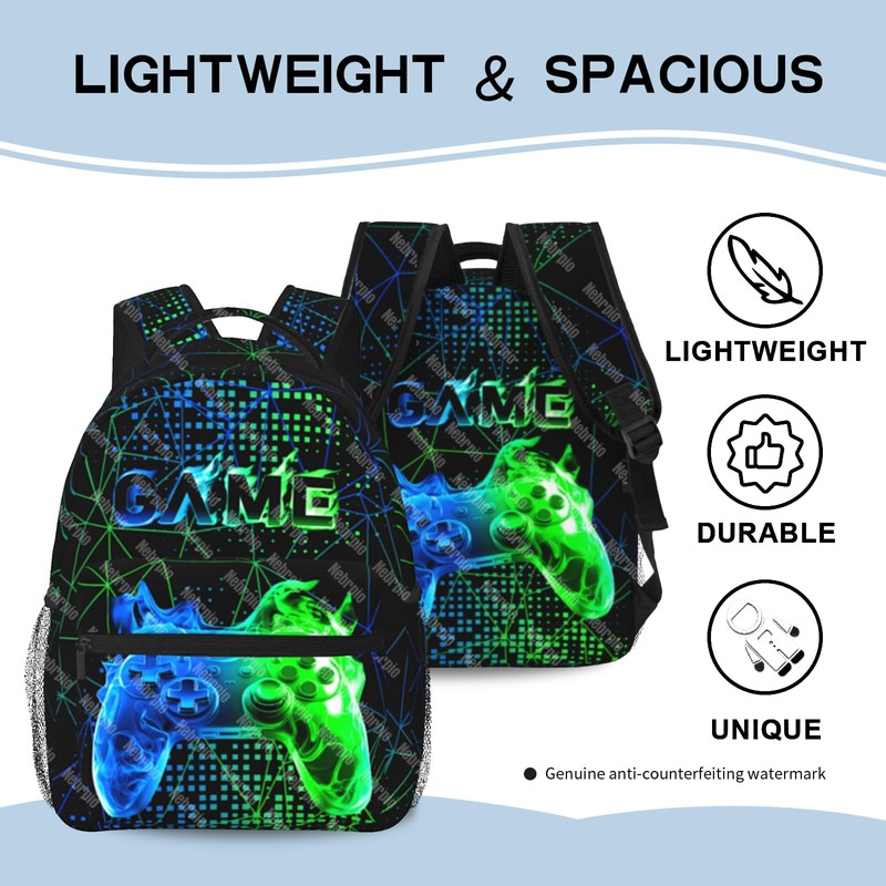 - High-Quality Kids Backpack: Our boys backpacks sized at 15.7"x7.8"x11.4"(H*W*L).Crafted from top-tier waterproof,tear-resistant,high-density nylon fabric,these kids backpacks for boys stand out for their durability and elegance.Making it just the right size for boys in elementary school and middle school. The game printing is brilliant and eye-catching, ensuring that children will absolutely love it.
