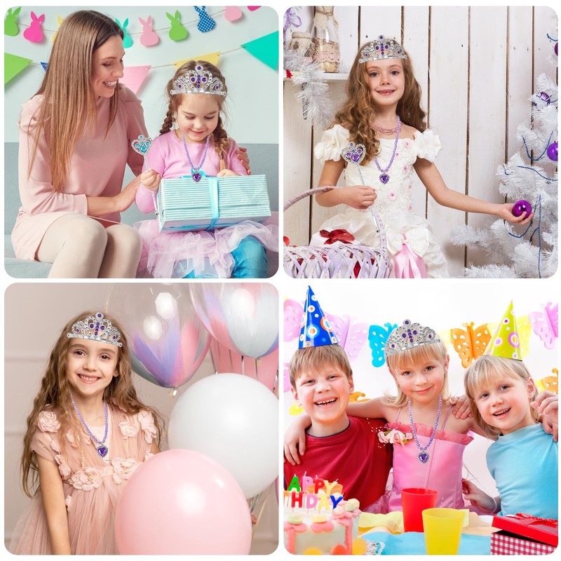 NebulaGlam Princess Dress Up Magic Wand Girls Stick Crown Necklace Princess Tiara Set Princess Jewellery Set Crown of Fancy Dress Costumes Children (Purple)