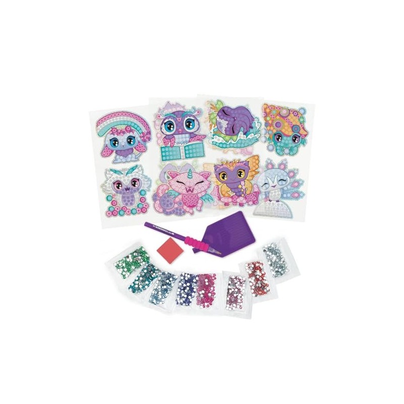 - Kit includes 12 ready-to-decorate stickers, over 1480 rhinestones, a rhinestone applicator, a rhinestone tray and a wax square