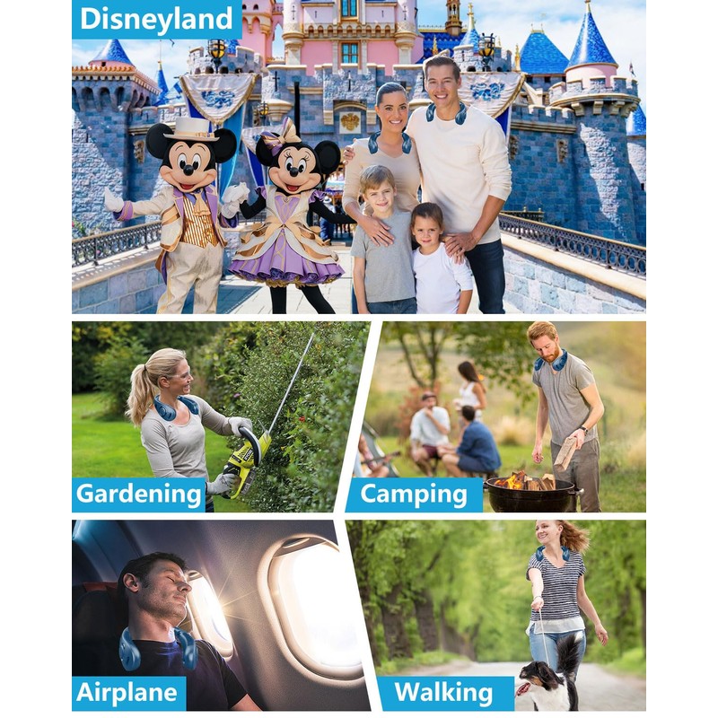 - đăSummer Hot Flashes Cooling Best GiftsăMisting neck fan portable with a bladeless design is safer, eliminating worries about hair getting tangled in fan blades.Neck coolers for hot weather is suitable for various indoor and outside activities such as gardening, camping, Disneyland, airplanes, travel, BBQ, golfing, hiking, work, kitchen, office, etc. Personal misters for cooling is the perfect presents for Mothers Day, Fathers Day, birthday for mom, dad, kids, women, men and friend
