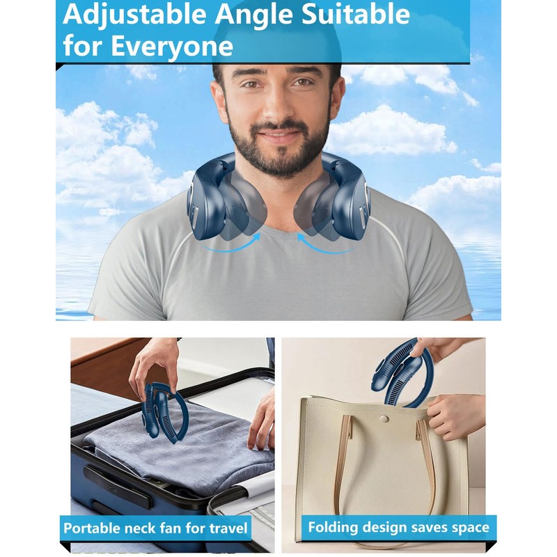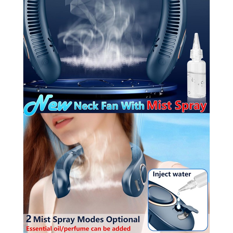 - đăAdjustable &Foldable Neck fan misteră Neck fans that blow cold air with mist can be adjusted inward, you can adjust the air outlet of the cooler portable fan neck well and it can be fixed on your neck better. Whether for travel walking, outdoor activities or indoor work. With folding design leafless around the neck fan can easily fit into a bag for convenient portability. The personal fan wearable neck fans can easily fit in a drawer, bookshelf or hook without taking up too much space