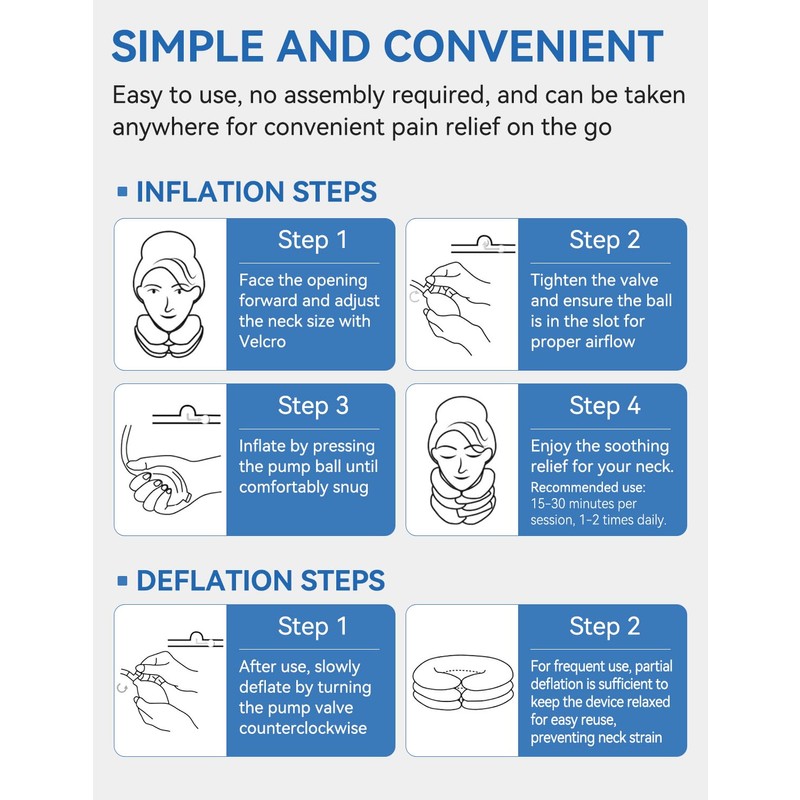 - Easy to Use & Portable: This lightweight cervical traction kit is simple to use with no assembly required—just inflate for quick relief from neck pain and tension. The soft material conforms to your neck, providing gentle support to relax muscles and reduce stress. Whether at home, the office, or on the road, enjoy convenient and effective neck care anytime, anywhere. The cervical neck traction device features a unique foldable design that makes it compact and easy to store in a suitcase, backpack, or car, allowing for on-the-go use. This cervical traction kit offers a portable solution for neck pain relief whenever you need it.