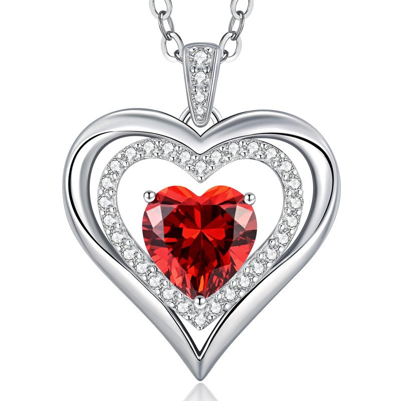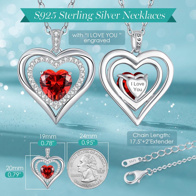 Necklaces for Women Birthstone Love Heart Pendant 925 Sterling Silver Jewellery Gifts for Mum Her Wife Girlfriend Anniversary Birthday Mothers Day Christmas Valentines