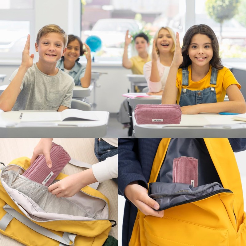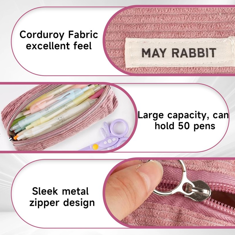 - [Durable Material]:This pencil case made of high quality corduroy is sturdy and durable, can hold up to 30-40 pens and other stationery