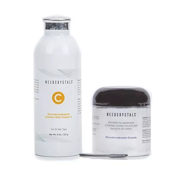 NeedCrystals Microdermabrasion Crystals with Vitamin C - 8oz, 120 Grit gently exfoliates while helping even out skin tone and refine texture for younger-looking skin.