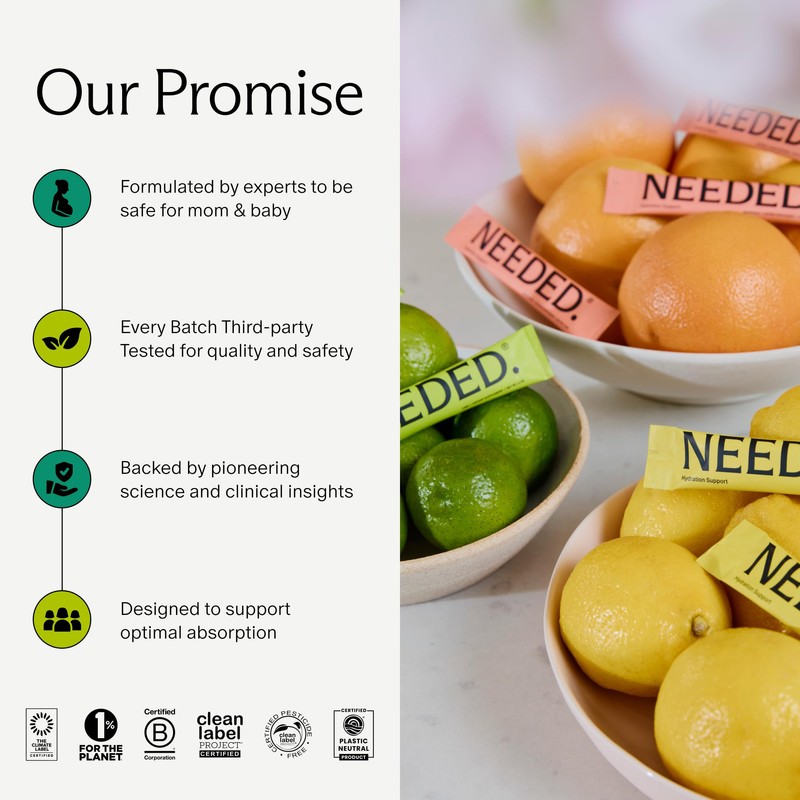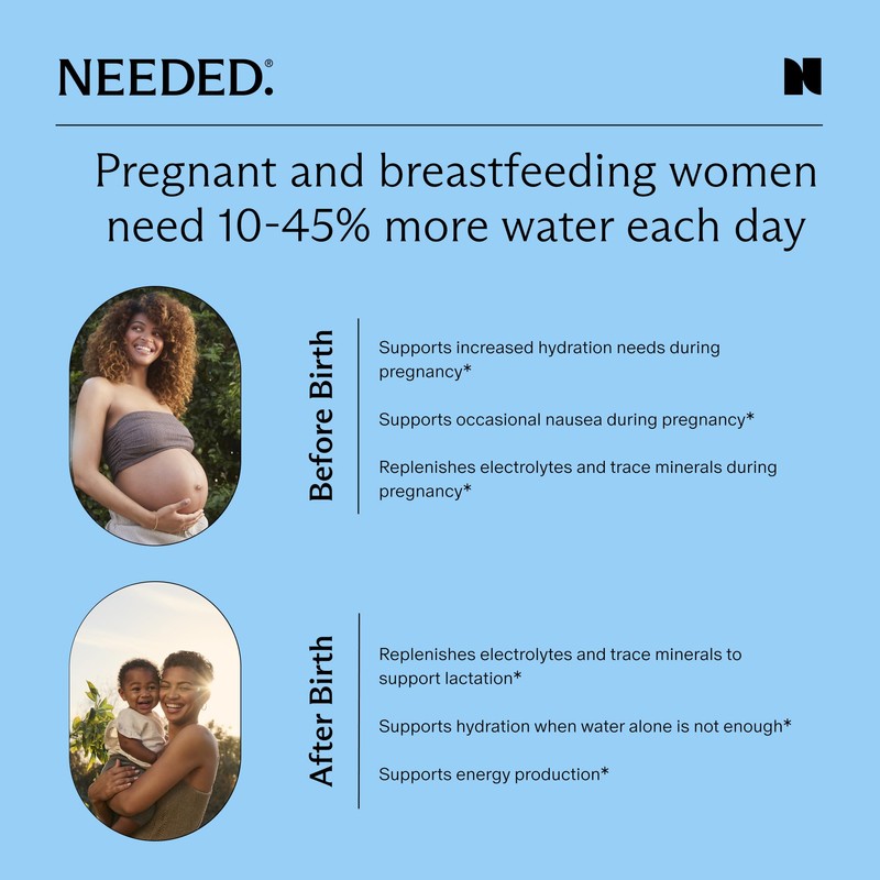 Needed. Hydration Support with Electrolytes & Trace Minerals – Electrolytes for Pregnancy & During Lactation - 30 Hydration Packets Lightly Sweetened with Real Fruit, Variety