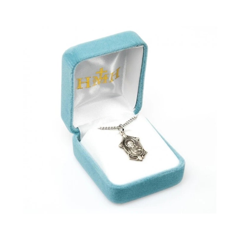 To complement the sacred nature of this piece, we've adorned it with an 18" genuine rhodium-plated curb chain. Rhodium not only enhances the luster of the silver but also provides a protective layer, ensuring the enduring beauty of your cherished medal.