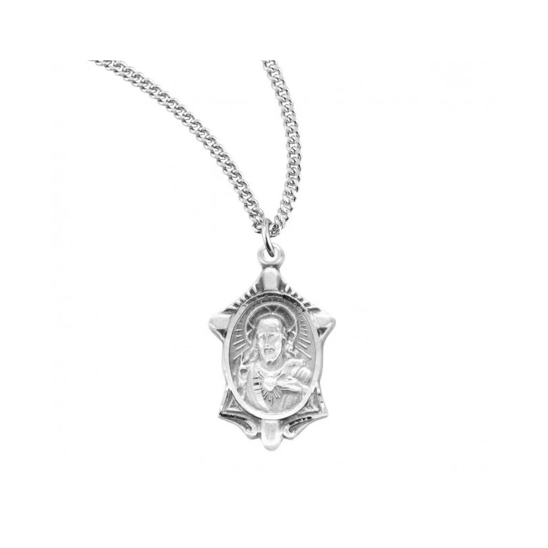 Needzo Sacred Heart of Jesus Sterling Silver Scapular Catholic Medal 0.9 In x 0.6 In