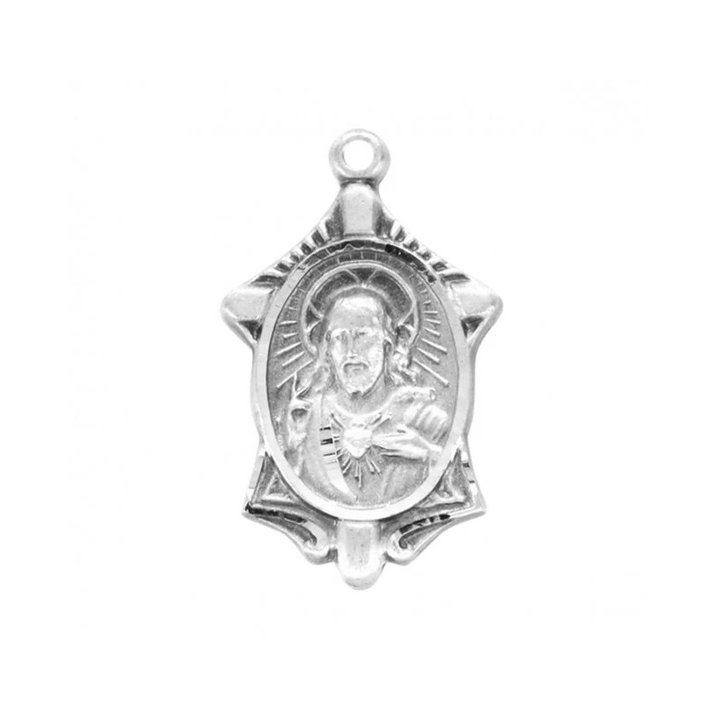 Sacred Heart of Jesus Sterling Silver Scapular Catholic Medal 0.9 In x 0.6 In