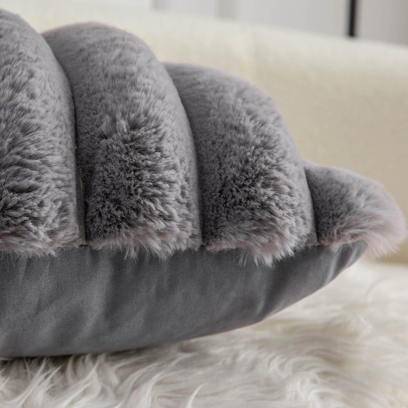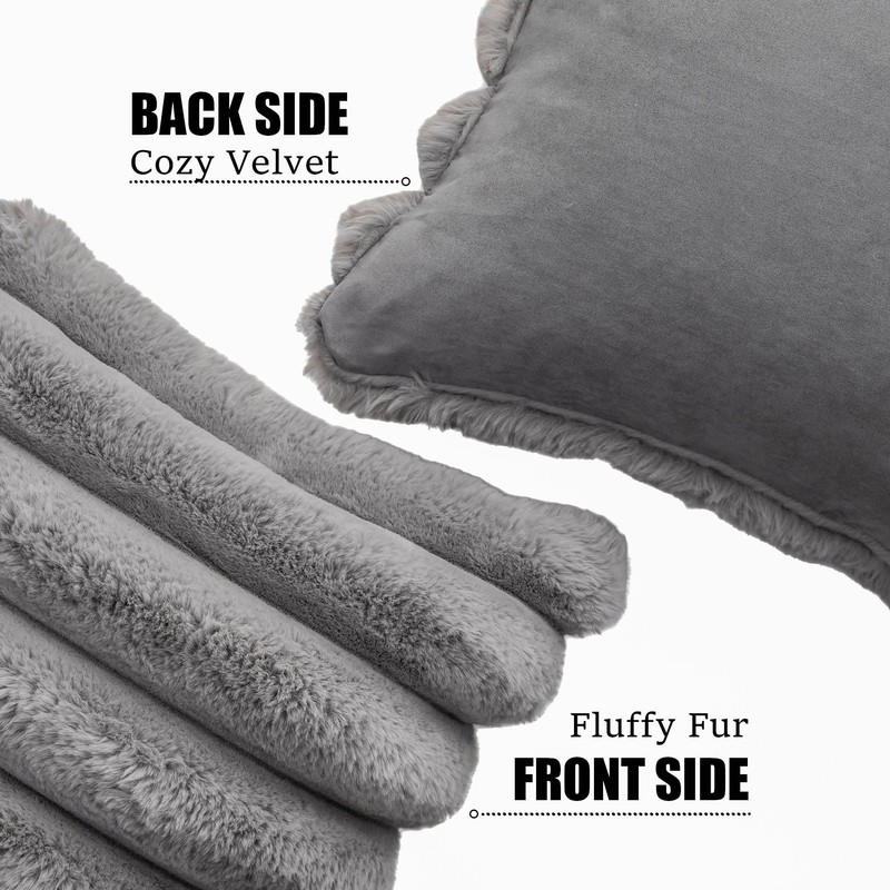 Neelvin Grey Faux Fur Cozy Soft Striped Decorative Throw Pillow Covers 22x22 inch,55cm x 55cm Set of 2,Velvet Pillowcase Cushion Case for Sofa Couch