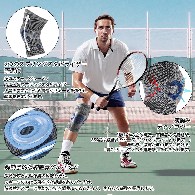 - ✅構造と機能:肌に優しい生地で作られた膝サポーター。 両側バネと膝蓋骨ゲルパッドは、膝の負担を軽減するため設計しました。改良した滑り止めシリコン:運動中にずれ落ちません。