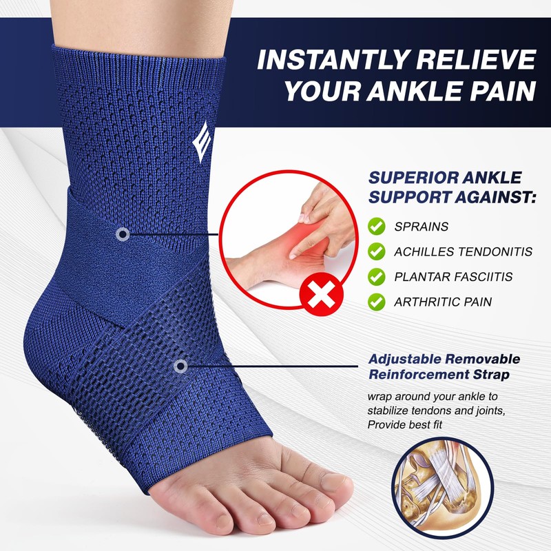 - Upgraded Designâ This ankle brace comes with an adjustable strap to provide personalized, customized compression based on your needs. Breathable high-elastic air knit fabric will perfectly fits your ankle curve from all angles, apply comfortable and full range even compression to your ankle joint. ankle support effectively disperses joint pressure, strengthen ankle support and maintain joint stability, keeping your ankle warm. BEST CHOICE for sports protection and ankle pain relief.