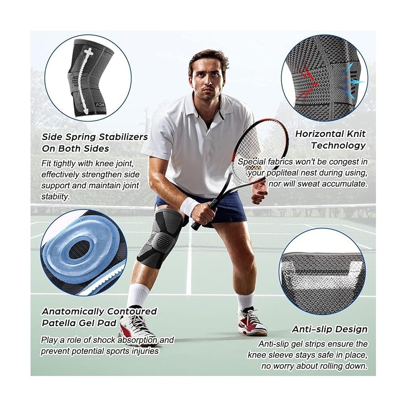 - Multifunctional: the medical grade knee support is used for meniscus tear, arthritis, ACL, joint pain and sports injuries. It can be used in many sports such as weightlifting, basketball, running, jogging, volleyball, CrossFit, gym, tennis, hiking, etc. Suitable for both men and women. Please refer to our size chart when purchasing.
