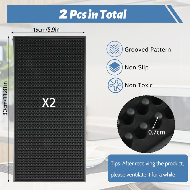 - Wear-resistant and heat-resistant: you will receive 2 bar mats measuring 30 x 15 x 1 cm. It is made of PVC material and can effectively block high temperatures, resist wear and bacteria and protect the worktop from damage caused by pots and pans