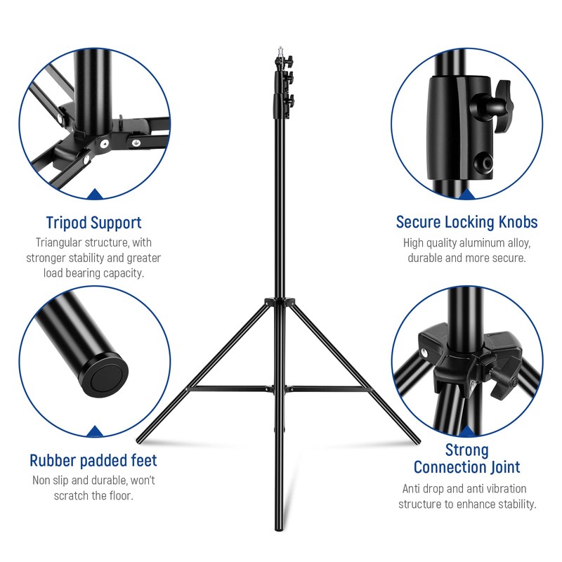 - 【Air Cushioned Heavy Duty All Metal Light Stand】 Integrated with the air cushion to protect your device from abrupt drops. This all metal light stand provides optimum and reliable support for photography, TikTok YouTube video recording, filmmaking, live streaming, and Zoom calls