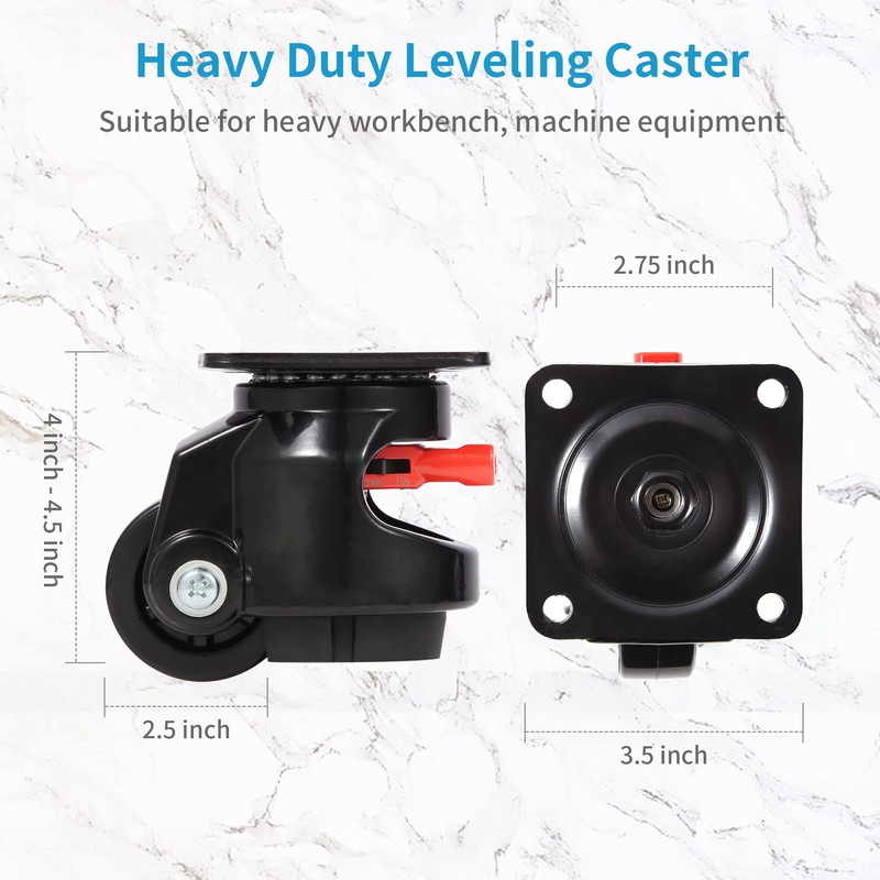 • 【Upgraded Ratchet Arm Design】- Our plate leveling machine casters have upgraded ratchet arm ergonomically designed to save effort and improve efficiency when you adjust the height of the retractable leveling machine caster. If you are using delicate lab tools, you might want to ensure each employee's perfect position that uses it. A leveling caster can go up or down, moving the equipment it's attached to along with it.