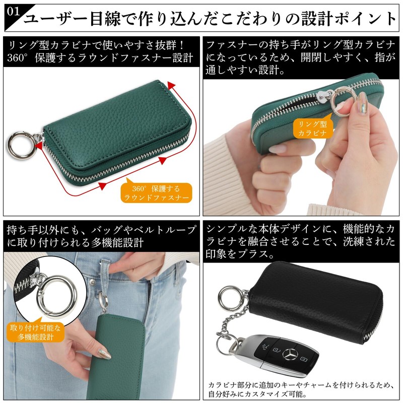 - Round zipper for secure storage. Features a round zipper that covers the entire body securely, so you don't have to worry about keys or cards falling out. High quality zipper for smooth opening and closing, and is durable. In addition, the zipper handle uses a ring carabiner that can be easily attached to your bag or belt loop. This prevents the loss of keys or cards while allowing quick access when needed. With a simple design that is suitable for both men and women, it has a design that combines functionality and style